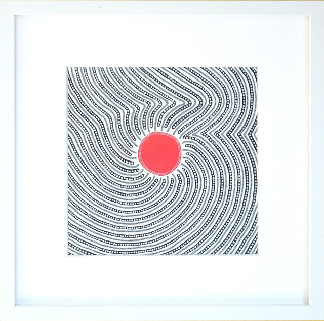 Plongez dans une danse hypnotique de lignes et de formes avec Petit vortex rouge no.1, une œuvre qui capture le mouvement et l’énergie à travers une composition minutieuse. Au centre, un disque rouge vibrant, bordé de points réguliers, semble irradier une force magnétique, tandis que les lignes ondulantes s’organisent en un tourbillon organique, évoquant à la fois un rayonnement solaire et un vortex d’énergie.